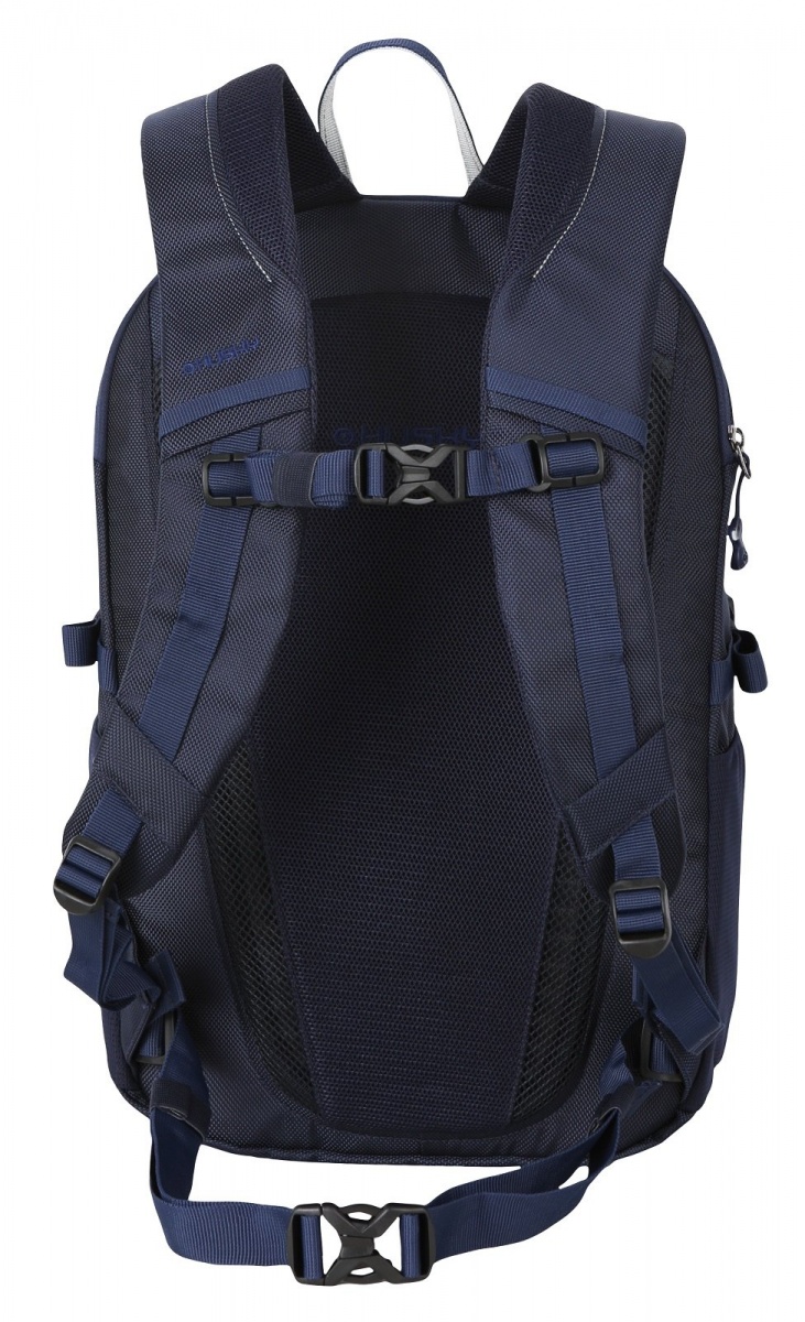 anatomicky tvarovaný chrbtový systém z EVA výlisku , priedušné polstrovanie na anatomicky tvarovaných ramenných a bedrových popruhoch, dve hlavné komory, bedrový pás, hrudný popruh, organizér, bočné kompresné popruhy.