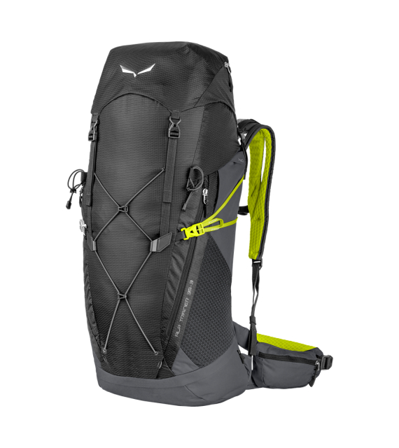 ALP TRAINER 30 + 3 je náš technický alpský turistický batoh pre dvoj až trojdňové túry, ktorý obsahuje náš nový systém nosenia Dry Back Air, ktorý je navrhnutý špeciálne na udržanie suchého chrbta. Má o 25% menší kontakt s povrchovou plochou ako naša predchádzajúca konštrukcia a obmedzuje kontakt bez ovplyvnenia kontroly zaťaženia. Jeho vstavaný ventilačný systém z priedušných materiálov umožňuje väčšie prúdenie vzduchu do chrbta. Tým sa po 15 minútach výrazne zníži teplota medzi telom a obalom o 1,6°C. Tento batoh, navrhnutý špeciálne pre ženy, má kratšiu dĺžku chrbta a užšie ramenné popruhy a bedrový pás, aby sa zmestili do ženskej anatómie. Naše ľahké delené ramenné popruhy tiež znižujú kontakt s telom, podporujú väčšie potenie a pohodlie, zlepšujú prúdenie vzduchu a zvyšujú mobilitu. Navyše, systém Twin Compression System (TCS) umožňuje zacvaknúť batoh tak, aby bremeno bolo čo najbližšie k vášmu chrbtu a zabránilo potknutiu pri rýchlych pohybových aktivitách. ALP TRAINER sme dostali všetky funkcie, ktoré potrebujete, a žiadne, ktoré nepotrebujete. To zahŕňa vrátane ľahko prístupných bočných sieťovaných vreciek, pláštenku, samostatnú spodnú komoru a upevnenie na tyč.