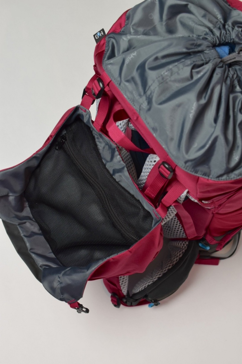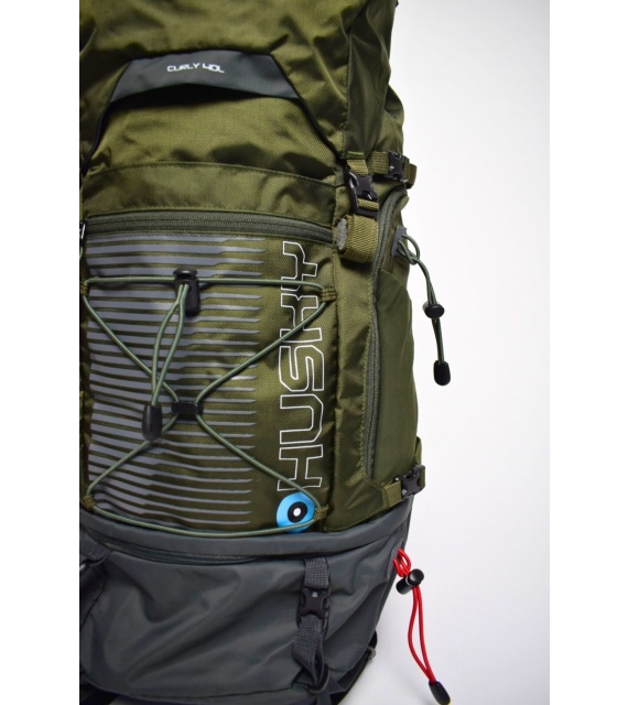 • Výbava batohu Curly:  Komfortný chrbtový systém, priedušné polstrovanie na anatomicky tvarovaných ramenných a bedrových popruhoch, 2 hlavné komory a bočný vstup do batohu, predné vrecko na zips, hrudný popruh, bočné, spodné a horné kompresné popruhy, úchyty na trekové palice, výšokovo nastaviteľnéhorné veko s vreckom, bočné elastické vrecká, otvor a uchytenie na vodný vak, pláštenka, reflexné prvky.