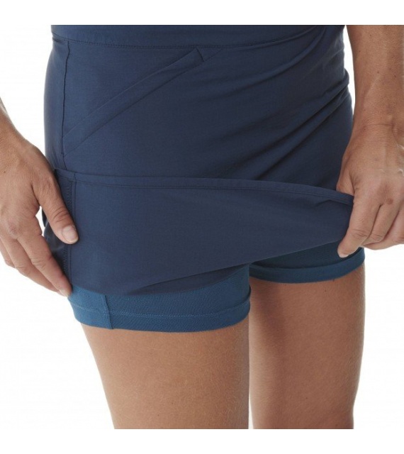 SHIFT SKORT W sú nádherné sukne-šortky pre aktívnu chôdzu a dochádzanie na bicykli v akomkoľvek teréne. Krásne vyrobené z ľahkej a elastickej tkaniny DRYWAY®, má na bokoch rázporky, ktoré umožňujú úplný pohyb pri zrýchlení tempa smerom k vrcholkom. Sieťované vnútorné šortky umožňujú pokožke dýchať, zatiaľ čo vodoodpudivá ripstopová sukňa je odolná proti roztrhnutiu a rýchlo odvádza vlhkosť, aby ste zostali v suchu po celý deň.