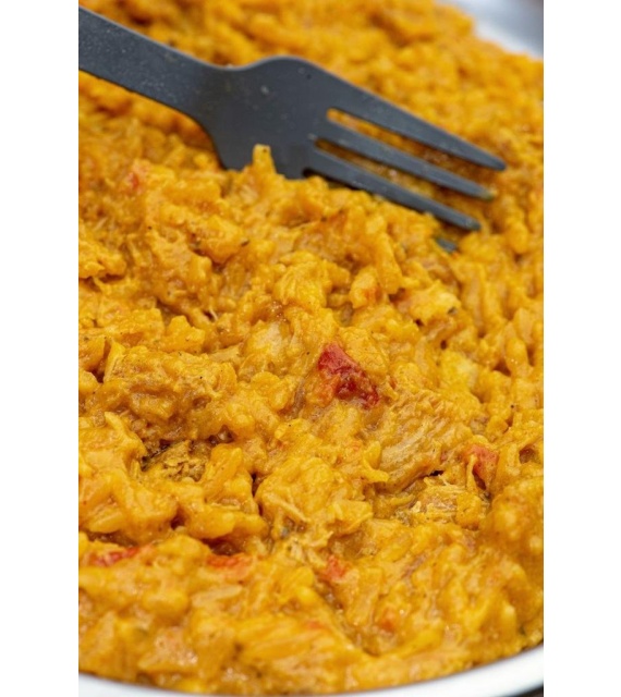 Dlhozrnná ryža (30%), krájané paradajky (11%), cibuľa, kuracie mäso (13%), smotana (mlieko), biely jogurt (mlieko), repkový olej, Tikka Curry pasta (3%), vínny ocot, paradajkový , drvený koriander, cukor, mletá paprika, morská soľ, odstredené sušené mlieko, koncentrovaná citrónová šťava, drvená rasca, drvená pískavica (Grécke seno), kardamómový prášok, Chilli, kyselina mliečna, bobkový list, zahusťovadlo (Xanthan) , kukuričná múka, Chilli.