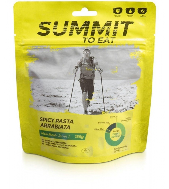 Pochutnajte si na vynikajúcich pikatných cestovinách Arrabiata. Obľúbené cestoviny v pikantnej paradajkovo-cesnakovej omáčke, vhodné aj pre vegetariánov, predstavujú plnohodnotné teplé jedlo pre akékoľvek kempovanie alebo dobrodružstvo v horách.