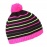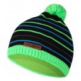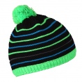 Detská pletená čiapka s vnútorným fleeceom, brmbolcom a pruhovaným vzorom v neonových farbách.