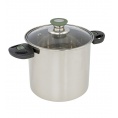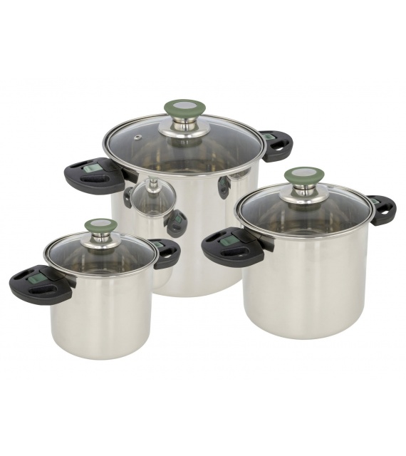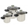 Luxusná 3-dielna sada hrncov z nerezovej ocele. Každý hrniec má sklenenú pokrievku s tepelne odolným úchytom. Každý hrniec má navyše tepelne odolné a sklopné rukoväte. Tieto rukoväte je možné po použití ľahko sklopiť, takže hrnce sú úplne zasúvateľné a kompaktné na uloženie. Šetrí až 40% miesta! Hrniec je úzky a vysoký, a preto sa ideálne hodí pre obmedzený priestor na plynových sporákoch. Používa sa na plynové, keramické a elektrické zdroje tepla.