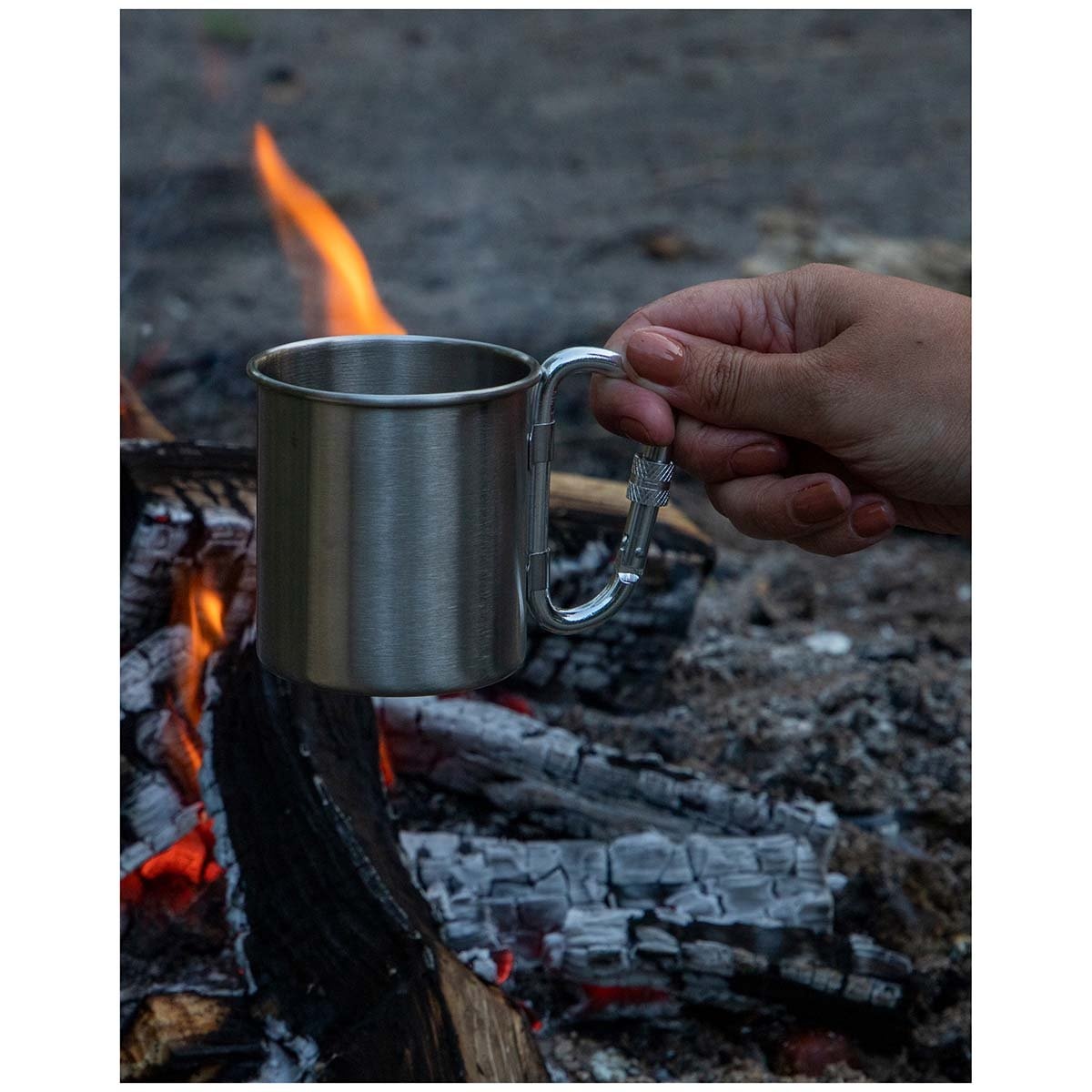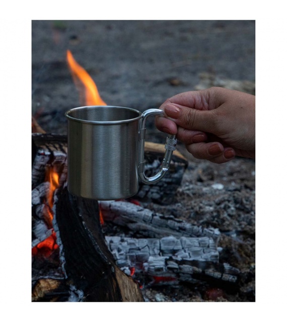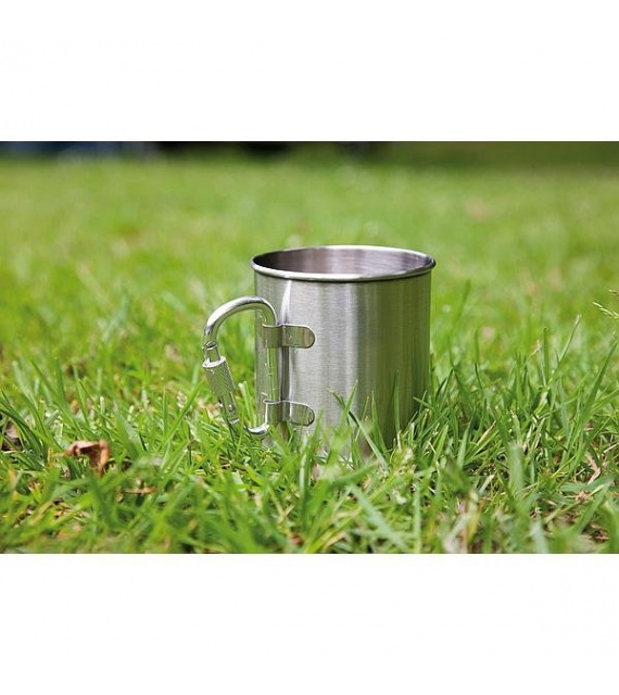 Robustný hrnček. Vďaka karabíne sa tento hrnček ľahko pripevní na opasok alebo batoh. Karabínu je možné zložiť, vďaka čomu je hrnček skladnejší.