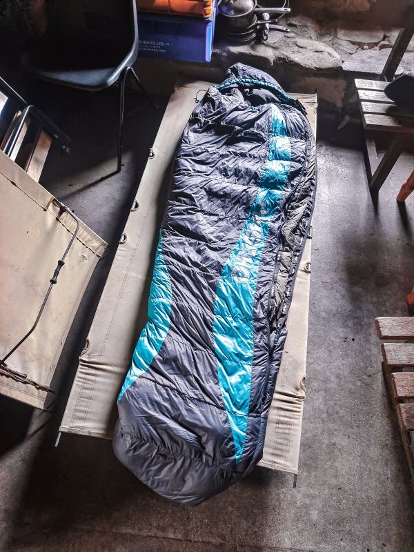 Nočná teplota padá k nule, ale ja spím ako bábätko. Je to hlavne vďaka teplému spaciemu vaku. Páperový spací vak Dexter -15 si rozťahujem na vojenskom ležadle, ktoré v chatke niekto nechal.