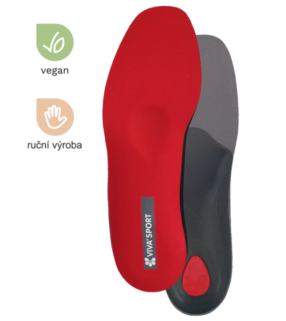 Prémiová ortopedická vložka do topánok pedag VIVA SPORT je určená pre všetkých so záujmom o šport a voľnočasové aktivity a športových nadšencov. Vložka má vlastný patent pre maximálny komfort. Červený povrch vložky zo špeciálneho materiálu, ktorý uvoľňuje napätie a únavu z nôh. 1) Tlmí nárazy pri pohybe. 2) Udržuje chodidlá v suchu, odvádza vlhkosť. 3) Vložku do topánok je možné prať. 4) Vhodné pre športovú a outdoorovú obuv.