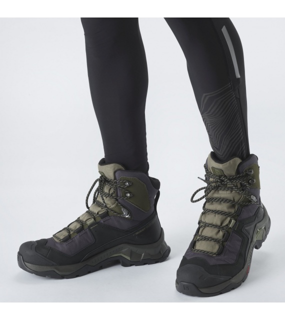 Pánske turistické topánky Quest Element Gore-Tex Salomon vyrobené z kvalitnej nubukovej kože ponúkajú vysokú priľnavosť vďaka podošve Contagrip a vodeodolnú membránu Gore-Tex.