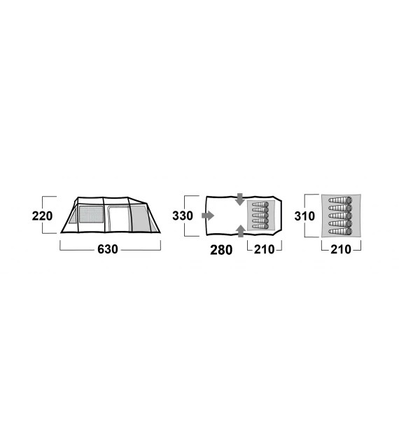 | Hmotnosť | : celková 23,7 kg Konštrukcia: dvojplášťový tunelový stan s vonkajšou konštrukciou |