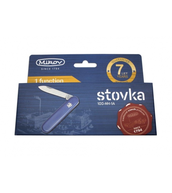 Stovka je tradičný vreckový zatvárací nôž. Jednou z mnohých výhod Stovky je veľkosť, zmestí sa do každého vrecka a je preto ideálnym spoločníkom pre každú príležitosť. Stovka je vyrobená z kvalitnej nerezovej ocele 420, elegantná rúčka je vyrobená z odolného plastu, vďaka ktorej padne do každej ruky Stovka je kvalitný výrobok nožiarskej firmy Mikov ktorá sídli v srdci Českého Švajčiarska v meste Mikulášovice.