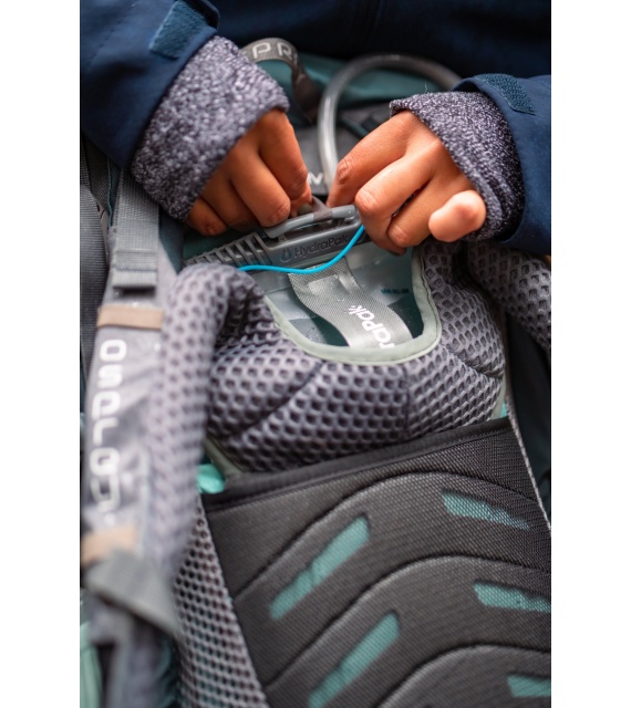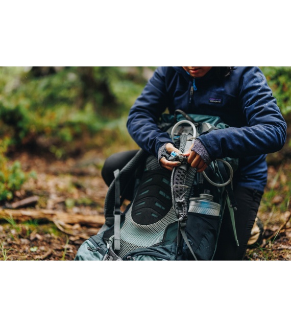 3D dno, dvojité prepážky Shape Loc a bočný výstupný otvor spoločne vytvárajú nádrž, do ktorej sa lepšie zmestí viac balenia. Aktualizovaný záves je navrhnutý tak, aby fungoval s klipmi, háčikmi a slučkami v širokej škále batohov.